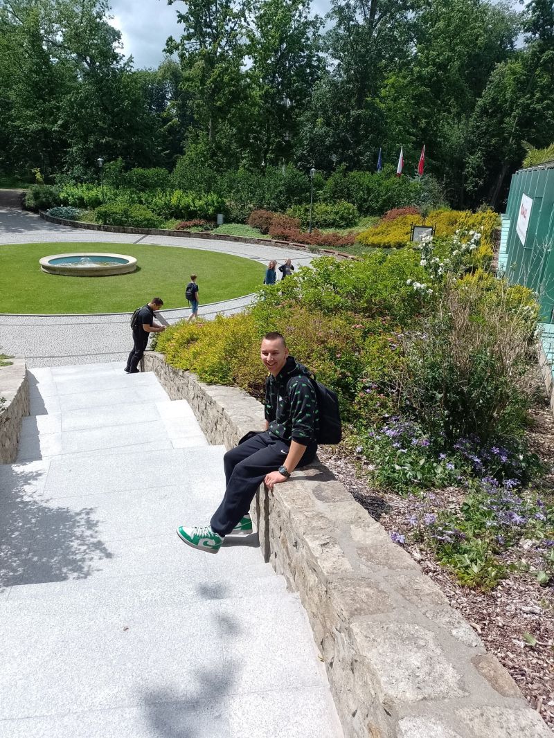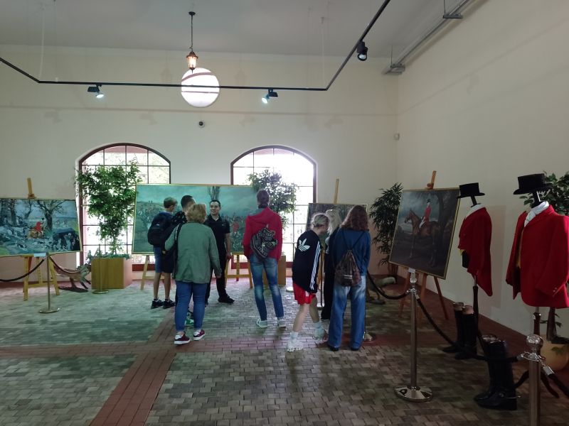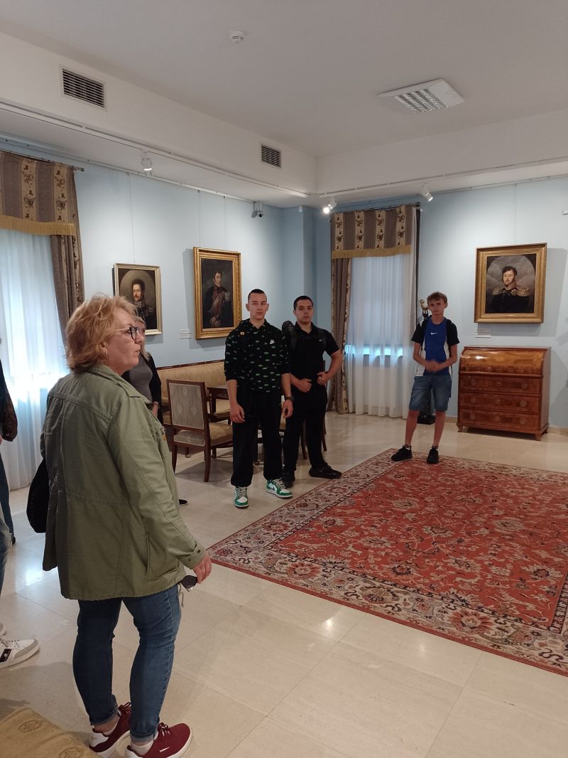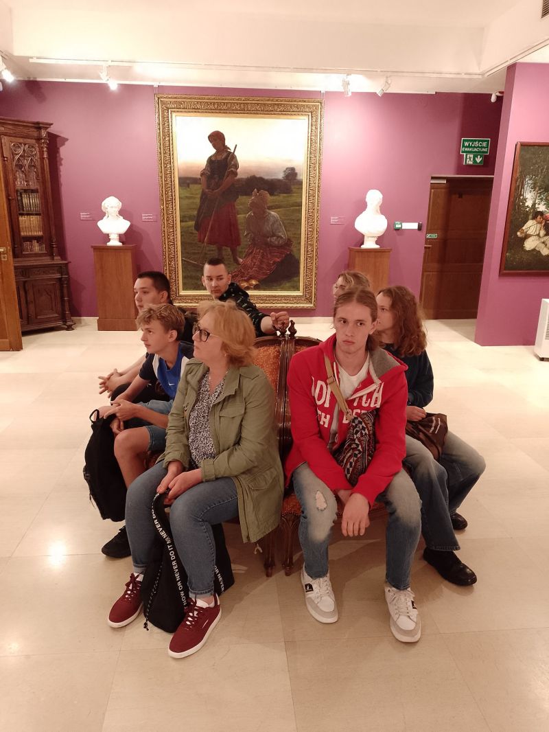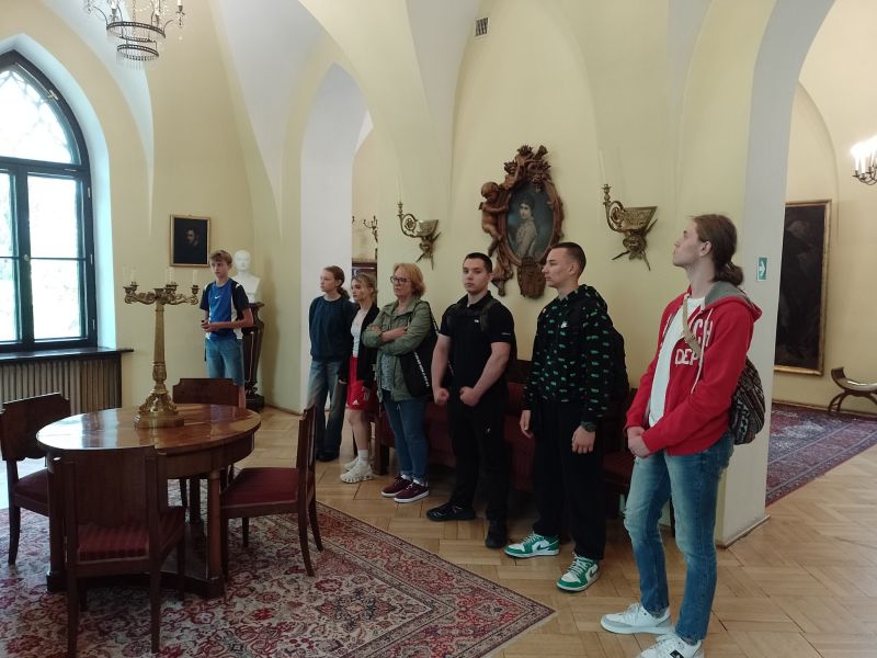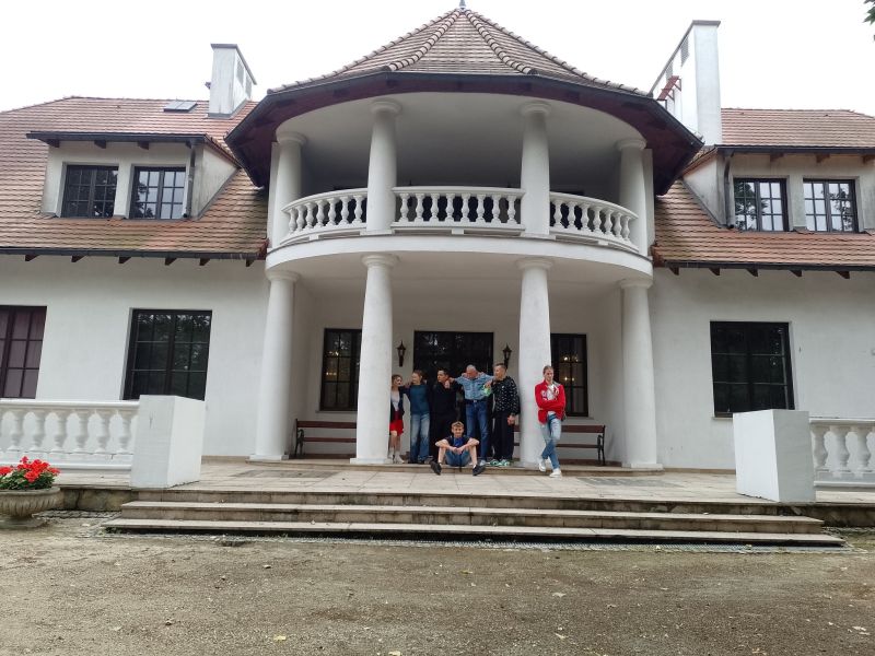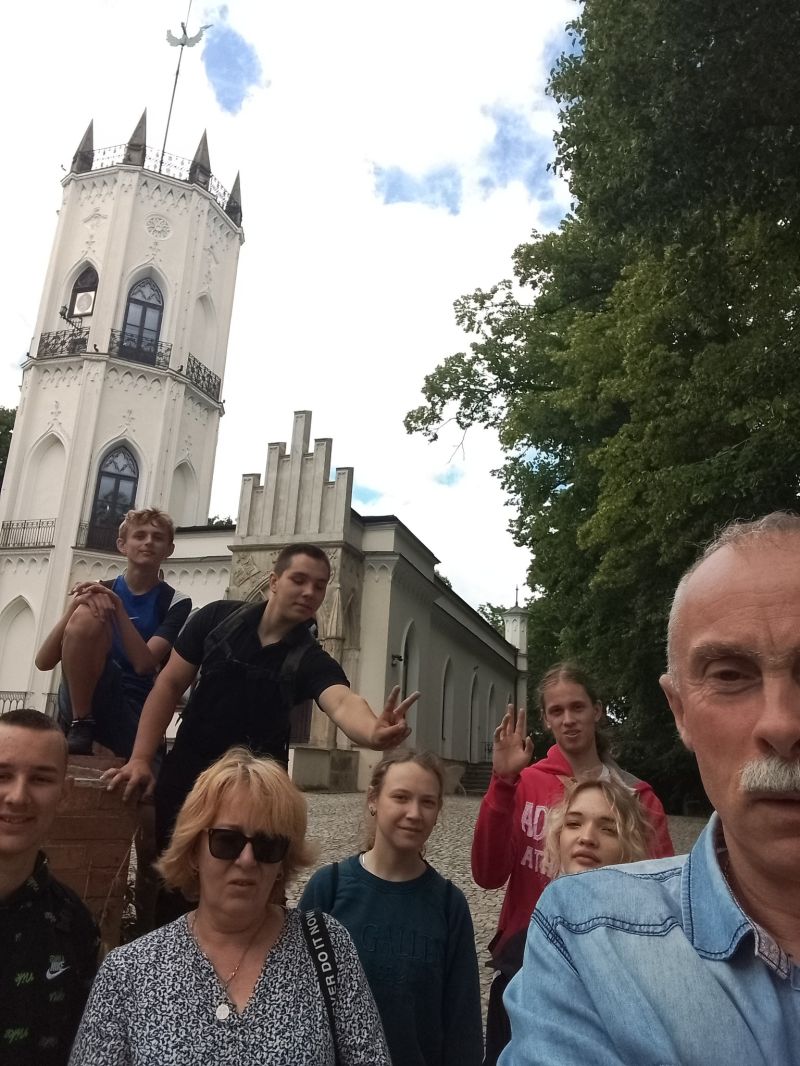 Śmiejąc się ruszamy do kolejnych obiektów. Sam myślałem, że dwie godziny i będzie po zwiedzaniu, więc był jeszcze plan na jakąś niespodziankę historyczną. Jednak z ekspozycji na ekspozycję, ciekawe opowiadania, dużo historii i nawet się nie spostrzegliśmy, gdy minęła... czwarta godzina zwiedzania! Pani przewodnik została pożegnana przez młodzież rzęsistymi brawami, a następnie ruszyliśmy do poszczególnych zabytków na sesje fotograficzne, spacer po parku, zakup pamiątek i lody przy restauracji nad stawem. Czas spędzony tam nie otarł się nawet o nudę. Fakt, z taką drużyną nudzić się nie można, a ciekawych eksponatów było dużo. Klimat pałacowy. Woliery z ptakami i zieleń parku dopełniała działa. W podsumowaniu każdy bardzo pochlebnie wypowiedział się o miejscu i całej wycieczce. A w drodze powrotnej większość pod wpływem emocji i wrażeń znużona pogrążyła się we śnie.