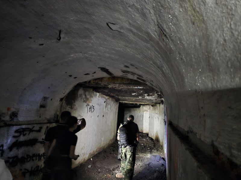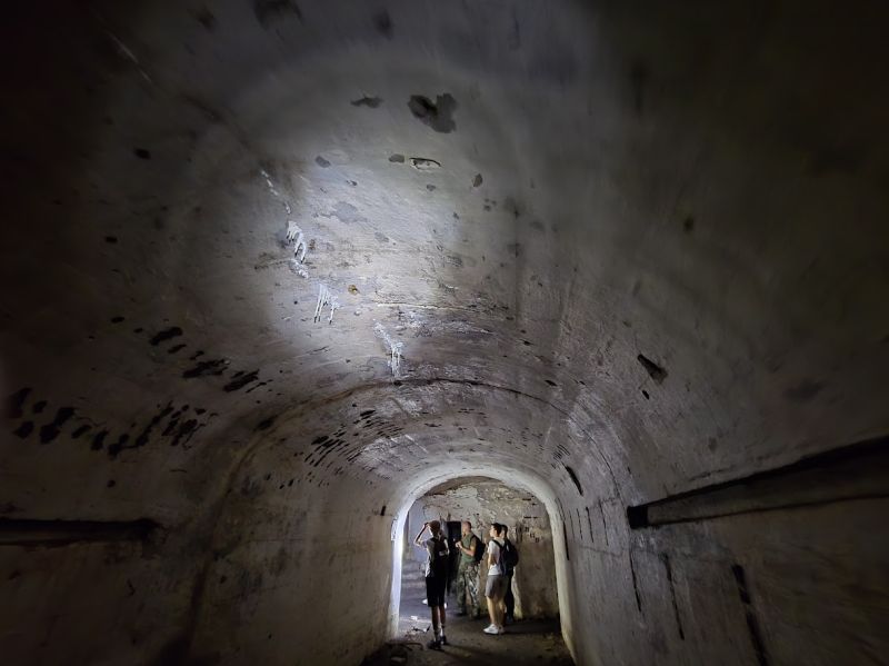 W trakcie wędrówki po forcie znaleźliśmy skrytkę geocachingu (zabawy polegającej na poszukiwaniu skrytek, tzw. keszy, z wykorzystaniem współrzędnych grograficznych). Był w niej mały notatnik, do którego się wpisaliśmy oraz zostawiliśmy po sobie brelok do kluczy z Brańszczyka. W forcie była też bardzo dobrze zachowana poterna (podziemne przejście umożliwiające komunikację wewnątrz fotru). Przeszliśmy nią. Było to moje pierwsze przejście takim podziemnym korytarzem. Prawdopodobie szybko przez kolejną nie przejdę, ponieważ dobrze zachowane poterny rzadko występują.