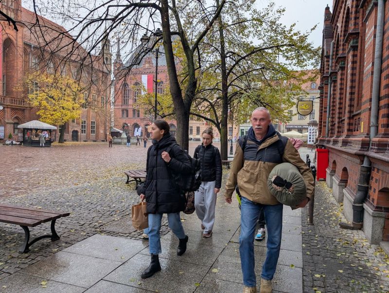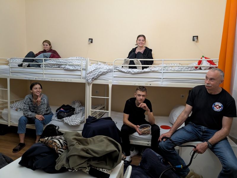 Dotarliśmy na miejsce bezpiecznie i bez przeszkód. Zaparkowaliśmy busa na płatnym podziemnym parkingu w podziemiach Centrum Sztuki Współczesnej i pomaszerowali w stronę wykupionego wcześniej noclegu. Zatrzymaliśmy się w położonym w samym centrum starówki Hostelu Freedom. Całą grupą zamieszkaliśmy w jednym wieloosobowym pokoju, na wygodnych piętrowych łóżkach. Mieliśmy do dyspozycji wszystkie wygody - łazienki, prysznice, kuchnię z pełnym wyposażeniem i wspólną przestrzeń do wypoczynku rekreacji. Wieczór upłynął na omówieniu planu na kolejny dzień, rozlokowaniu się i przygotowaniu do snu.