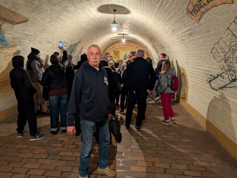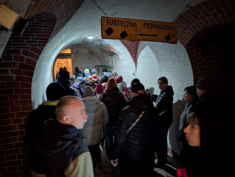 Wczesnym popołudniem wyruszyliśmy pieszo przez starówkę do Muzeum Twierdzy Toruń na jej zwiedzanie. To, co zobaczyliśmy na miejscu, przeszło nasze najśmielsze marzenia: nikt z nas nigdy wcześniej nie widział tak doskonale odrestaurowanego, wspaniale wyposażonego i przygotowanego do zwiedzania XIX-wiecznego obiektu fortyfikacyjnego. Do tego trafił na się fantastyczny przewodnik - erudyta, z poczuciem humoru i lekkością wypowiedzi. Ponad półtorej godziny spaceru historycznego minęło nie wiadomo kiedy. Na dodatek został w nas niedosyt i chęć ponownego przyjazdu, by staranniej i dogłębnie zapoznać się z udostępnionymi eksponatami i informacjami - zabrakło na to czasu.